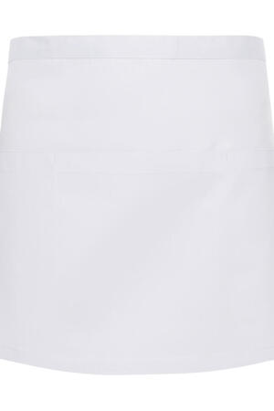 Durchgehendes Band aus Schürzenstoff mit Nahtsicherung, Aufgesetzte Tasche (60 x 22 cm) auf ganzer Schürzenbreite mit 3 Fächern (jeweils 20 x 22 cm), Waschbar bis 60°C, Chemische Reinigung, Maße: 60 x 35 cm