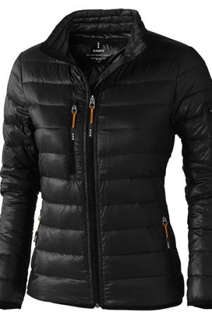 Leichte Damen-Daunenjacke, Daunendichter Stoff, Windschutz innen mit Kinnschutz, Damen Modell ist tailliert für eine schmeichelhafte Passform, Ärmeltasche mit Reißverschluss zur einfachen Werbeanbringung, Brusttasche mit Reißverschluss, Seitentaschen mit Reißverschluss, Elastische Bündchen und Bund, Reißverschluss mit Kontrastband, Easy Grip Reißverschluss Puller (inkl. einem zweiten Set in anthrazit), Aufhängeschlaufe, Obermaterial 100% Nylon mit wasserabweisender Dull Cire Beschichtung, 20D, Hochwertiges Futter aus 90% Daune und 10% Federn, 115g/m²