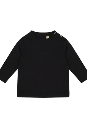 Single Jersey, Rundhals-T-Shirt mit Druckknöpfen an der Schulter, Doppelnähte an Saum und Bündchen, Ripp-Detail am Hals