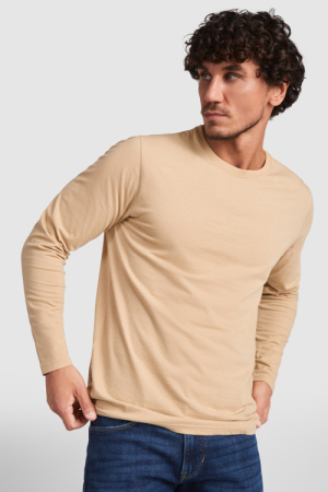 Langarm-T-Shirt langarm. Rundstrick - ohne Seitennähte. Rundhals 4-lagig. Durchgehendes Nackenband von Schulter zu Schulter. Ohne Ärmelbündchen.