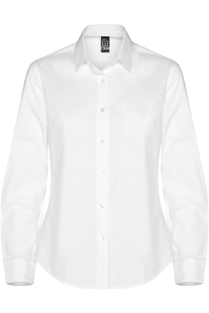 Langärmelige Bluse für Frauen aus Stretchmaterial. · verstärkter Kragen.· Falten auf der Brust und am Rücken.· Vordere Knopfleiste mit sichtbaren Knöpfen.· Zwei Knöpfe an den Manschetten.· Rückenpasse.· Abgerundeter Saum.