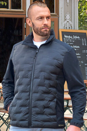 Wärmend, atmungsaktiv, nachhaltig, Leichte und funktionelle Hybrid-Jacke im sportlichen Stepp-/Webfleece-Design, Polyesteranteil aus recyceltem Plastik, Vorder- und Rückenteil wirken wie gesteppt, kommen aber dank eines innovativen Ultraschallverfahrens ganz ohne Nadeleinstiche aus; Vorteil: keine Kältebrücken und kein Eindringen von Feuchtigkeit, Wärmende Ärmel-Innenseiten mit Micro-Schicht aus angerautem Fleece, 2 seitliche Schubtaschen mit verdecktem Reißverschluss, 2 große Innentaschen