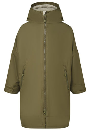 Körper: 100% Polyester – 208 g/m², Futter: Sherpa aus 100% Polyester – 295 g/m², Taschenfutter: Polarfleece aus 100% Polyester – 190 g/m², Tragetasche: 100% Polyester, Vielseitig einsetzbare Jacke, Wasserdichte Außenseite mit Kapuze, Verstellbare Fixiergurte an den Handgelenken, Kinnschutz, Die Innenseite aus kuscheligem Sherpa-Fleece absorbiert Feuchtigkeit und hält warm, Oversize, Ideal zum Wechseln in warme und trockene Kleidung, 2-Wege-Reißverschluss, Mehrere tiefe Taschen innen und außen, Auslieferung mit einer für Rebranding geeigneten Tasche, in der die Jacke verpackt und transportiert werden kann, wenn sie nicht verwendet wird