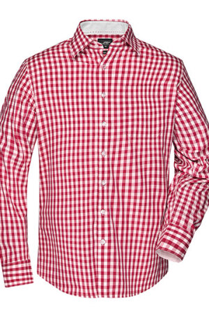Modisches Karoshirt mit Uni-Einsätzen an Kragen und Manschette, Hochwertige, bügelleichte Popeline-Qualität mit Easy-Care Finish, Abgerundeter Saum, Classic fit, Leicht taillliert, Brusttasche 13 x 15 cm, 2 seitliche Rückenfalten