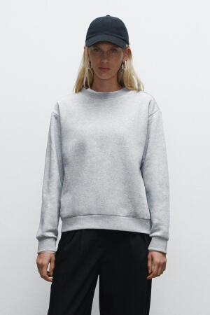 recycelt, Produkt der H&M Group, Einzelnadelstich, Kettenstich-Kappnaht an den Schultern, Nackenband innen, 2X2 Rippstrick, Halbmond-Passe im Nacken, Griffgefühl: Mittelschwer, weich und fließend
