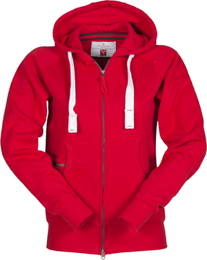 Damen-Sweatjacke mit durchgehendem Zwei-Wege-Reißverschluss, Kapuze mit Kordelzug, Innenseite in Kontrastfarbe, Kängurutaschen, Bündchen aus Rippstoff an Ärmeln und Taille, verstärkte Nähte, 300 g/m²