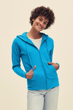 Innen nicht angerauht, Kapuze mit Kordelzug in passender Farbe, Raglanärmel, Verdeckter Full Zip für eine optimale Druckfläche, Aufgesetzte Taschen, Elastische Rippstrickbbündchen an Ärmelabschluss und Bund, Belcoro® Garn sorgt für ein weiches Gefühl und eine bessere Optik beim Bedrucken