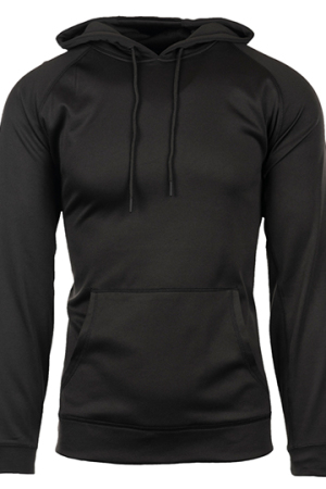 Raglan-Ärmel, Beuteltaschen vorn, Overlock-Nahtdetails, Arm- und Bauchbündchen, Schwarzer Kordelzug