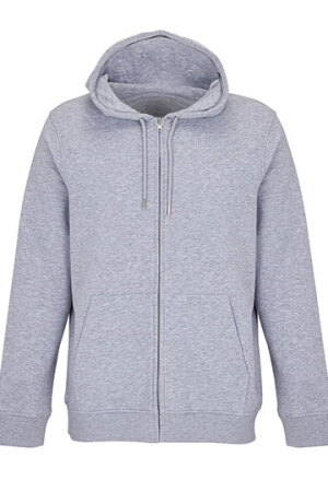 Außenmaterial: gekämmte Bio-Baumwolle in Umstellung, Recycelter Polyester, Geschnitten und genäht, Eingesetzte Ärmel, 2x2-Ripp an Bündchen und Saum, Kängurutasche, Kapuze mit Jersey-Futter, Kordelzug mit Metallösen und Stoppern, Verschluss vorne mit verdecktem Reißverschluss, Metall-Reißverschluss und -Schieber, Jersey-Halbmond und Nackenband im Kragen, Ungebürstete Innenseite