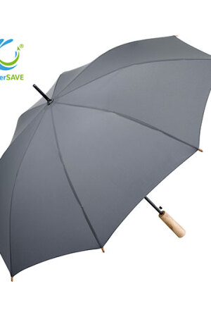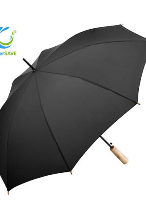 Bezug: 100% Polyester-Pongee (recycelt), Komfortable Automatik-Funktion zum schnellen Öffnen, Windproof-Features für höhere Gestell-Flexibilität und bessere Windsicherheit, Flexible Fiberglasschienen, Echtholz-Spitzen, Gerader Echtholzgriff mit Werbeanbringungsmöglichkeit, Höherer Korrosionsschutz durch schwarze Galvanisierung des Stahlstocks, waterSAVE® - Artikel wird wassersparend produziert