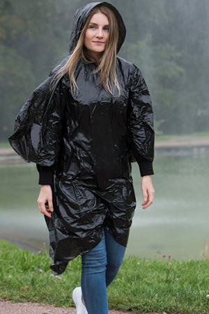 Universeller Regenponcho, Für den einmaligen Gebrauch, 0,02mm Polyethylen, Kleines praktisches Packmaß, Einzeln verpackt