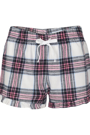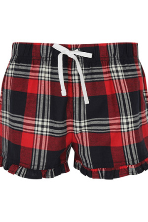 Gewebte Damenshorts mit Schottenmuster und Volants, Gummizug in der Taille mit gespielter Kordelzug, Heraustrennbares Label