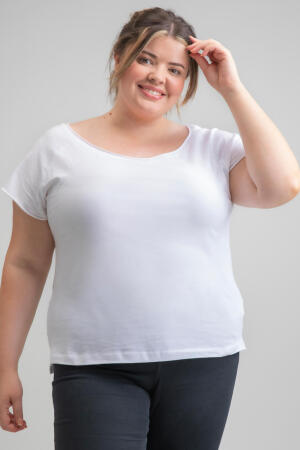 ringgesponnen und gekämmt, Breiter, schulterfreier Ausschnitt, Ungesäumte Kanten an Halsausschnitt und Ärmelenden, Raglanärmel, Gerader Saum mit Seitenschlitzen, Leicht umzuetikettieren, Locker fallende Passform