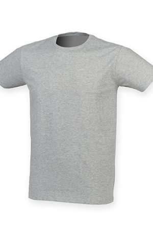 Stretch-T-Shirt mit Rundhalsausschnitt, Enzymwaschung für ein einzigartiges, weiches Tragegefühl, Entfernbares SF (Skinnifit)-Etikett, Moderne lange Passform, Elasthan und Seitennähte für eine verbesserte Passform, besseren Komfort und Formbeständigkeit, Weicher, dehnbarer Ripp-Ausschnitt, mit Einfassung im Nacken, Worldwide Responsible Accredited Production (WRAP) certified production