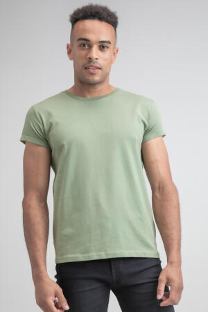 Single Jersey, Schmales Rippstrickbündchen am Hals, Eingerollte, fixierte Ärmel, Moderne Passform.