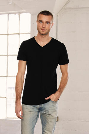 ringgesponnen und gekämmt, V-Ausschnitt, Halsausschnitt mit Rippstrick eingefasst, Körpernah geschnitten