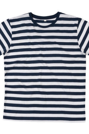 ringgesponnen und gekämmt, Single Jersey mit extra glatter Oberfläche, optimal geeignet zum Veredeln, 2 cm breite Streifen, Nackenband, Rundhalsausschnitt mit Rippstrickbündchen eingefasst, Neutrales Etikett, leicht umzuettiketieren
