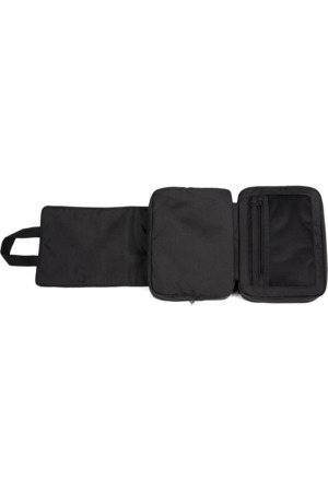 100 % Polyester. Kulturbeutel aus 50 % recyceltem Polyester. Doppeltes Fach mit Reißverschluss. Verschlussklappe mit doppelter Schnalle, die eine große Veredelungsoberfläche bietet. 2 Handgelenkskordeln für eine vertikale Befestigung.