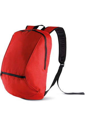Rucksack aus 600 D Polyester, Hauptfach unterteilt mit Innentasche, 1 Fronttasche mit Reißverschluss.