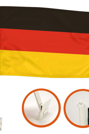 Hochwertige Autofahne inklusive weißer Halterung zur Befestigung am Autofenster. Stab 50 cm Länge. Maße kombiniert: 450 x 290 x 0 x Ø: 0.