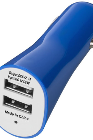 Doppelstecker-Adapter. Kann zum Aufladen persönlicher Geräte an eine Autosteckdose angeschlossen werden. USB-Ausgang: 5 Volt/2,0 A. Eingang: 12 V - 24 V. Geeignet für Autos und LKW.