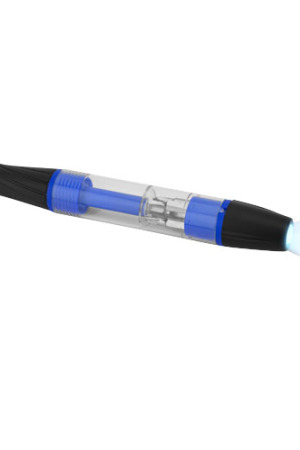 Stift mit Drehmechanismus in der Spitze, abschraubbarem Schaft mit magnetischem Bit Halter inkl. 5 Bits und drehbarer LED Lampe oben. Inkl. Batterien.